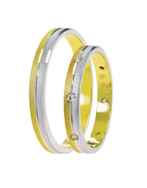 Δίχρωμες Βέρες Γάμου Χρυσές 14Κ με Διαμάντια