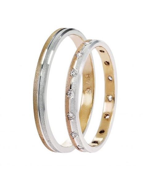 Βέρες Γάμου Χρυσές 9Κ Δίχρωμες με Ζιργκόν