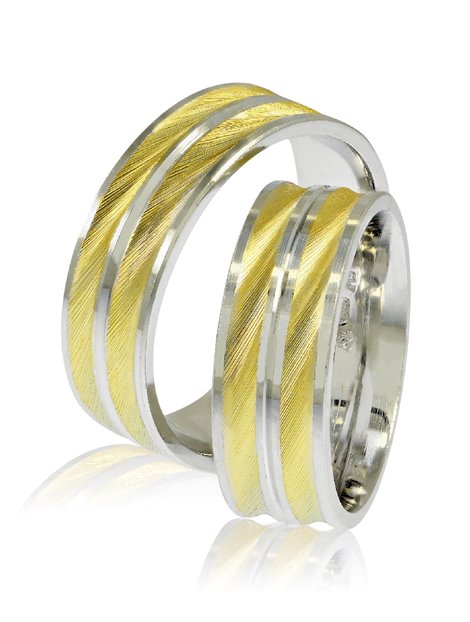 Ζευγάρι βέρες γάμου από Ασήμι 925 σε χρώμα λευκό και κίτρινο.Η γυναικεία μπορεί να στολιστεί με πέτρες ημιπολύτιμες ενώ το μέγεθος τους προσαρμόζεται με το νούμερο της αρεσκείας σας.