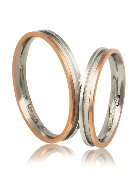 Ζευγάρι βέρεςγ άμου από Ασήμι 925 και Χρυσό 9Κ σε ροζ.Η βάση τους είναι σατινέ ενώ το ένθετο είναι λουστρέ.Η γυναικεία μπορεί να στολιστεί και με πέτρες ημιπολύτιμες (ζιργκόν) ενώ το μέγεθος τους προσαρμόζεται με το νούμερο της αρεσκείας σας.