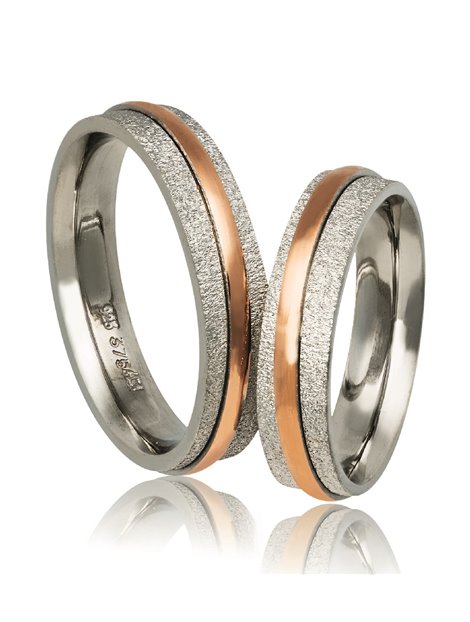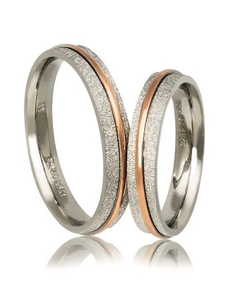 Ζευγάρι βέρες γάμου από Ασήμι 925 και Χρυσό 9Κ σε ροζ.Η βάση τους είναι σατινέ ενώ το ένθετο είναι λουστρέ και μπουλ.Η γυναικεία μπορεί να στολιστεί και με πέτρες ημιπολύτιμες (ζιργκόν) ενώ το μέγεθος τους προσαρμόζεται με το νούμερο της αρεσκείας σας.