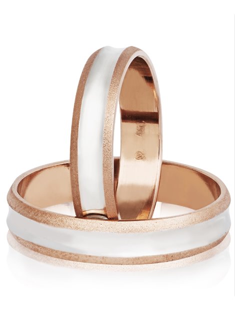 Βέρες γάμου από Χρυσό Κ14 σε χρώμα λευκό και ροζ.Η γυναικεία μπορεί να στολιστεί με πέτρες ημιπολύτιμες ενώ το μέγεθος τους προσαρμόζεται με το νούμερο της αρεσκείας σας.