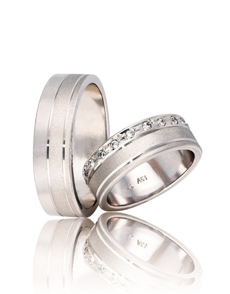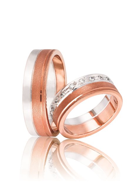 Ζευγάρι βέρες γάμου από Χρυσό 9Κ σε λευκό και ροζ χρώμα.Η γυναικεία είναι διακοσμημένη με πολύτιμες πέτρες (μπριγιάν).Το μέγεθος τους προσαρμόζεται με το νούμερο της αρεσκείας σας.