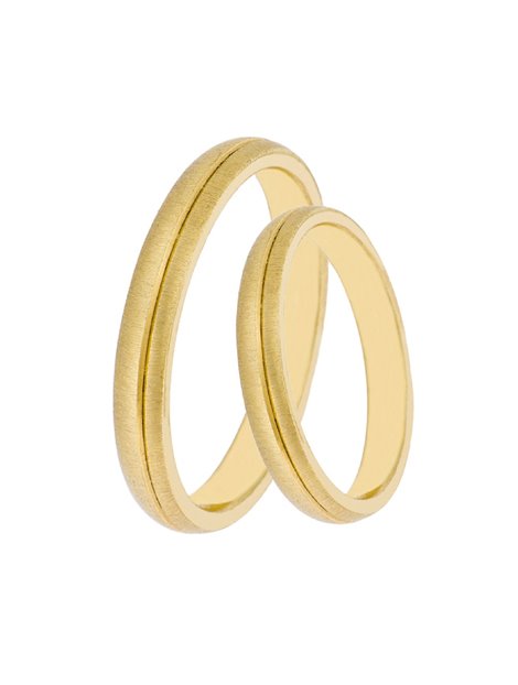 Ζευγάρι βέρες γάμου κατασκευασμένες από κίτρινο Χρυσό 14Κ με την επιφάνεια τους να είναι μπουλ και ματ.Τα νούμερα τους μπορούν να προσαρμοστούν μεγέθη της αρεσκείας σας.