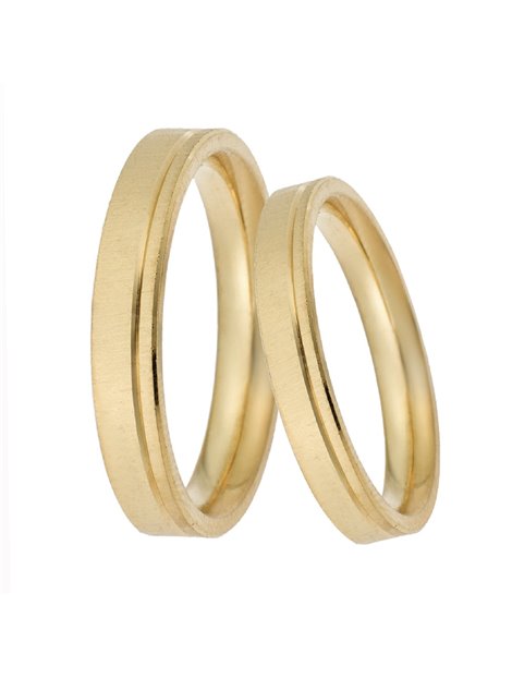 Ζευγάρι βέρες γάμου με πλακέ ματ επιφάνεια και κατασκευασμένες από κίτρινο Χρυσό.Τα νούμερα τους μπορούν να προσαρμοστούν μεγέθη της αρεσκείας σας.
