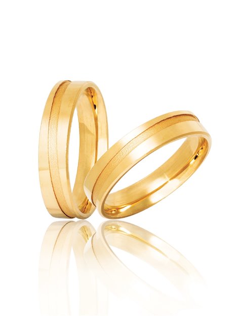Ζευγάρι βέρες γάμου από Χρυσό Κ9 σε κίτρινο χρώμα.Η επιφάνεια τους είναι πλακέ ενώ η επεξεργασία τους σατινέ.Η γυναικεία μπορεί να στολιστεί με πέτρες ημιπολύτιμες ενώ το μέγεθος τους προσαρμόζεται με το νούμερο της αρεσκείας σας.