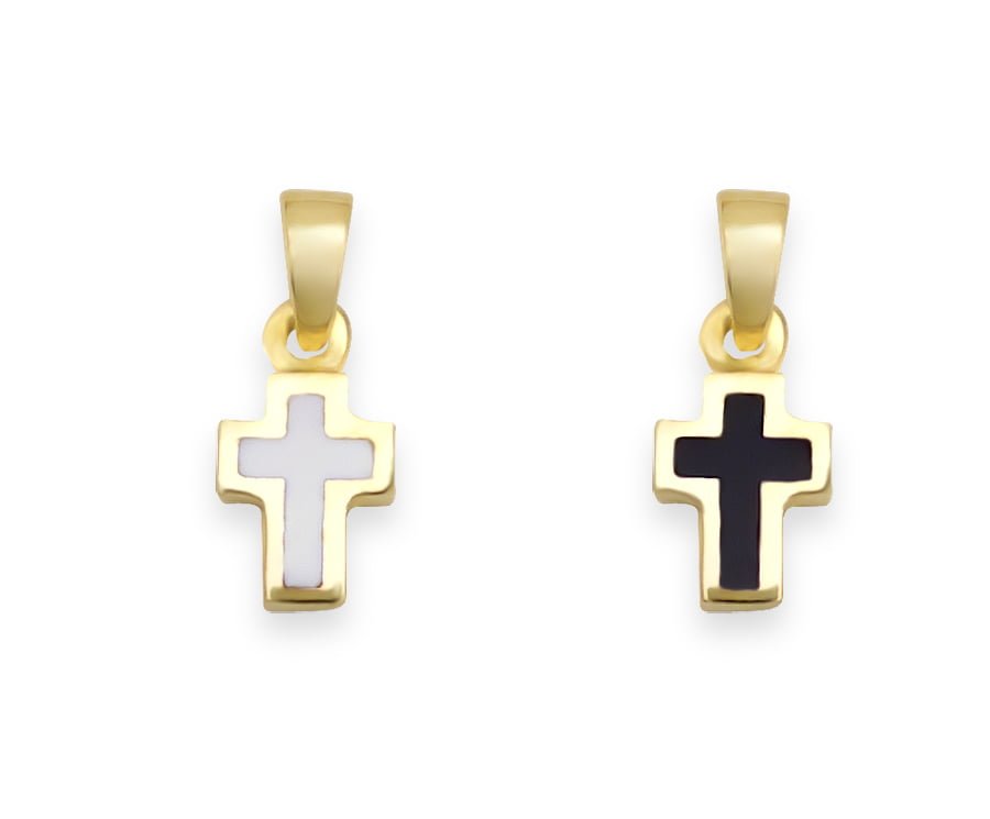 0,6gr Χρυσο μενταγιον Κ14 σταυρος με σμαλτο διπλης οψης