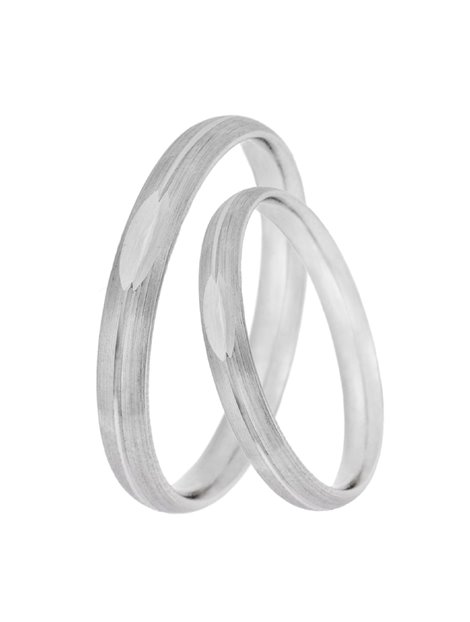 Ζευγάρι βέρες γάμου κατασκευασμένες από λευκόχρυσο14Κ με την επιφάνεια τους να είναι μπουλ και ματ.Τα νούμερα τους μπορούν να προσαρμοστούν μεγέθη της αρεσκείας σας.