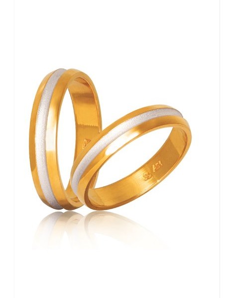 Βέρες γάμου από Χρυσό Κ14 σε χρώμα κίτρινο και λευκό.Η γυναικεία μπορεί να στολιστεί με πέτρες ημιπολύτιμες ενώ το μέγεθος τους προσαρμόζεται με το νούμερο της αρεσκείας σας.