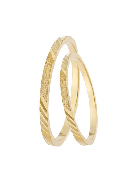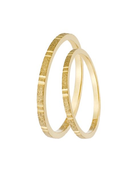Ζευγάρι βέρες γάμου κατασκευασμένες από κίτρινο Χρυσό 14Κ με όμορφα σχέδια ανάμεσα τους ενώ το μέγεθος τους προσαρμόζεται με το νούμερο της αρεσκείας σας.
