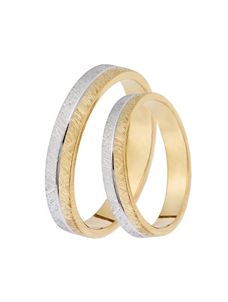 Ένα ξεχωριστό ζευγάρι βέρες κατασκευασμένες από Χρυσό 9Κ σε κίτρινο και λευκό χρώμα με επιφάνειες ματ ενώ το μέγεθος μπορεί να προσαρμοστεί με το νούμερο της αρεσκείας σας.