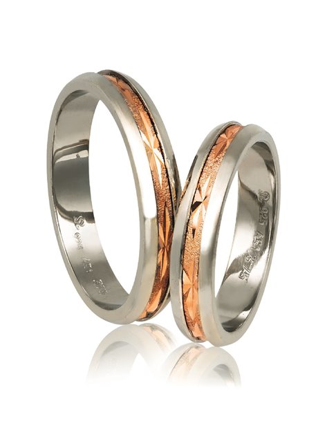 Ζευγάρι βέρες γάμου από Ασήμι 925 και Χρυσό 9Κ σε ροζ.Η βάση τους είναι λουστρέ ενώ το ένθετο είναι σατινέ.Η γυναικεία μπορεί να στολιστεί και με πέτρες ημιπολύτιμες (ζιργκόν) ενώ το μέγεθος τους προσαρμόζεται με το νούμερο της αρεσκείας σας.