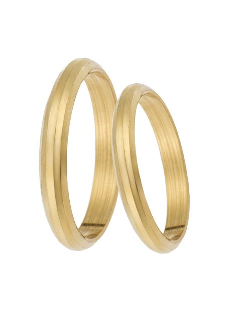Ζευγάρι βέρες γάμου κατασκευασμένες από κίτρινο Χρυσό 9Κ όπου η επιφάνεια τους είναι μπουλ με κοψίματα ενώ το μέγεθος τους μπορεί να προσαρμοστεί με το νούμερο της αρεσκείας σας.