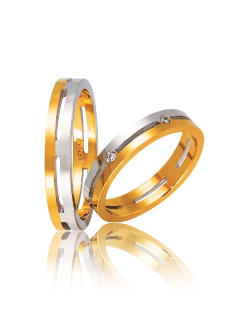 Ζευγάρι βέρες γάμου από Χρυσό 9Κ σε κίτρινο χρώμα και λευκό.Η γυναικεία είναι διακοσμημένη με πολύτιμες πέτρες (μπριγιάν).Το μέγεθος τους προσαρμόζεται με το νούμερο της αρεσκείας σας.