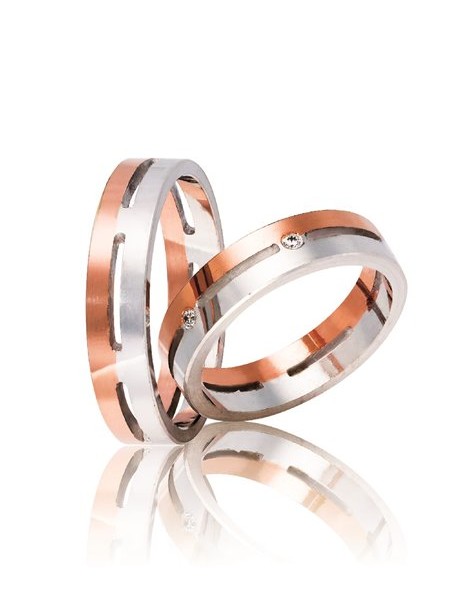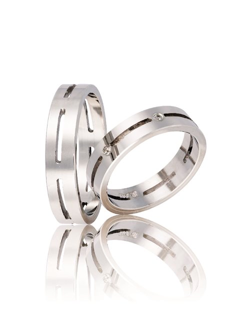 Ζευγάρι βέρες γάμου από Χρυσό 9Κ σε λευκό χρώμα.Η γυναικεία είναι διακοσμημένη με πολύτιμες πέτρες (μπριγιάν).Το μέγεθος τους προσαρμόζεται με το νούμερο της αρεσκείας σας.